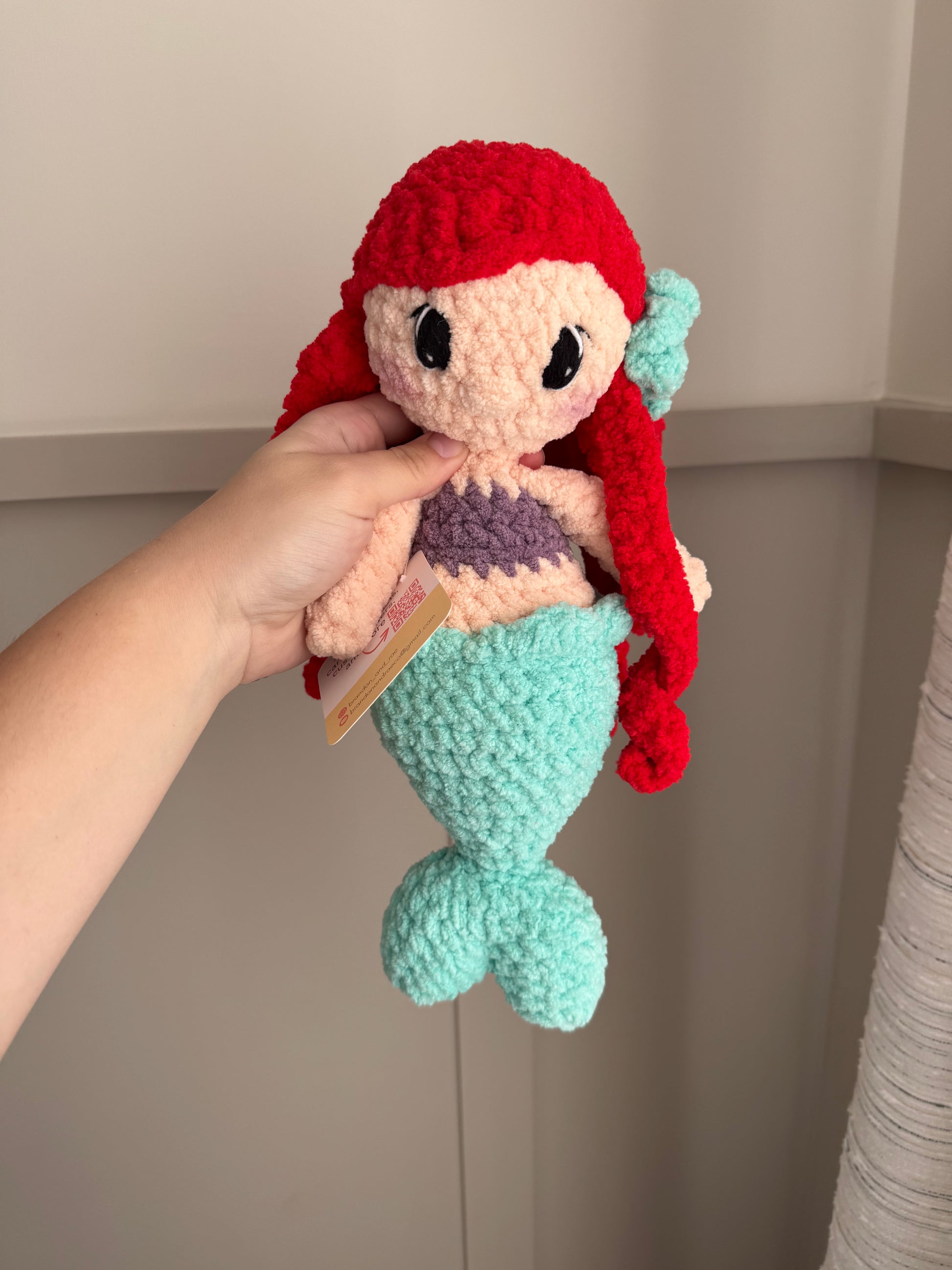 Ariel a stuffed head & body and measures approximately 14” in length.